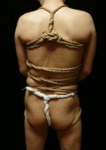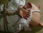 こちらで用意した白い鯉口と初めて締めるという六尺を締めて、初めは首から胸と後ろ手に縛っていろいろ責め