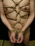 そのあと亀甲と両手を前で縄手錠に縛りいろいろ責め、途中に赤い細い組みひもでPと玉の根元と竿を縛り