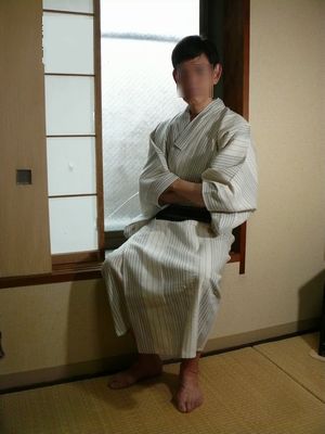 撮影当日新宿の和風のホテルの前で待ち合わせをして部屋に。初めに本人持参の着物と六尺でいろいろなポーズで撮影後