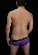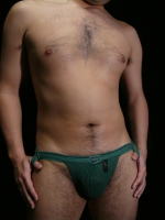 持ってきたいろいろなアンダーウエアーから白と紫のを選ぶ。ケツワレはスタジオの用意してある中から緑のけつわれで