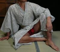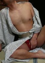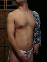 六尺愛用の彼なのでいろいろ持ってきた六尺から数本選び、スタジオの着物・こいくちを着せて撮影スタート。